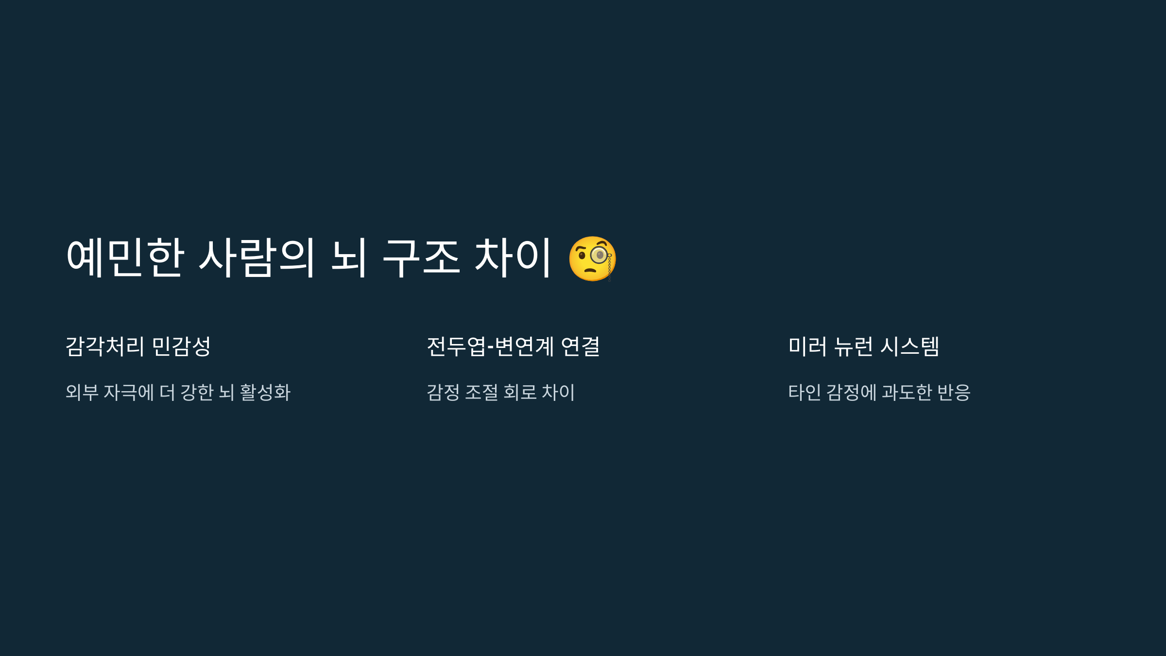 즉, 뇌 속 호르몬과 신경전달물질의 균형이 깨지면 사소한 일에도 더 민감하게 반응할 수 있어요. 다음 섹션에서는 예민한 사람들의 뇌 구조가 어떻게 다른지 알아볼게요! 😉