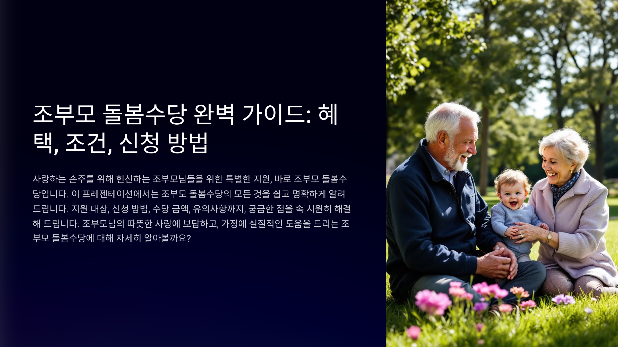 하지만 이 수당을 모든 조부모가 받을 수 있는 것은 아니에요. 정해진 조건과 절차가 있으니, 아래 내용을 통해 지원 가능 여부와 신청 방법을 자세히 알아볼게요.