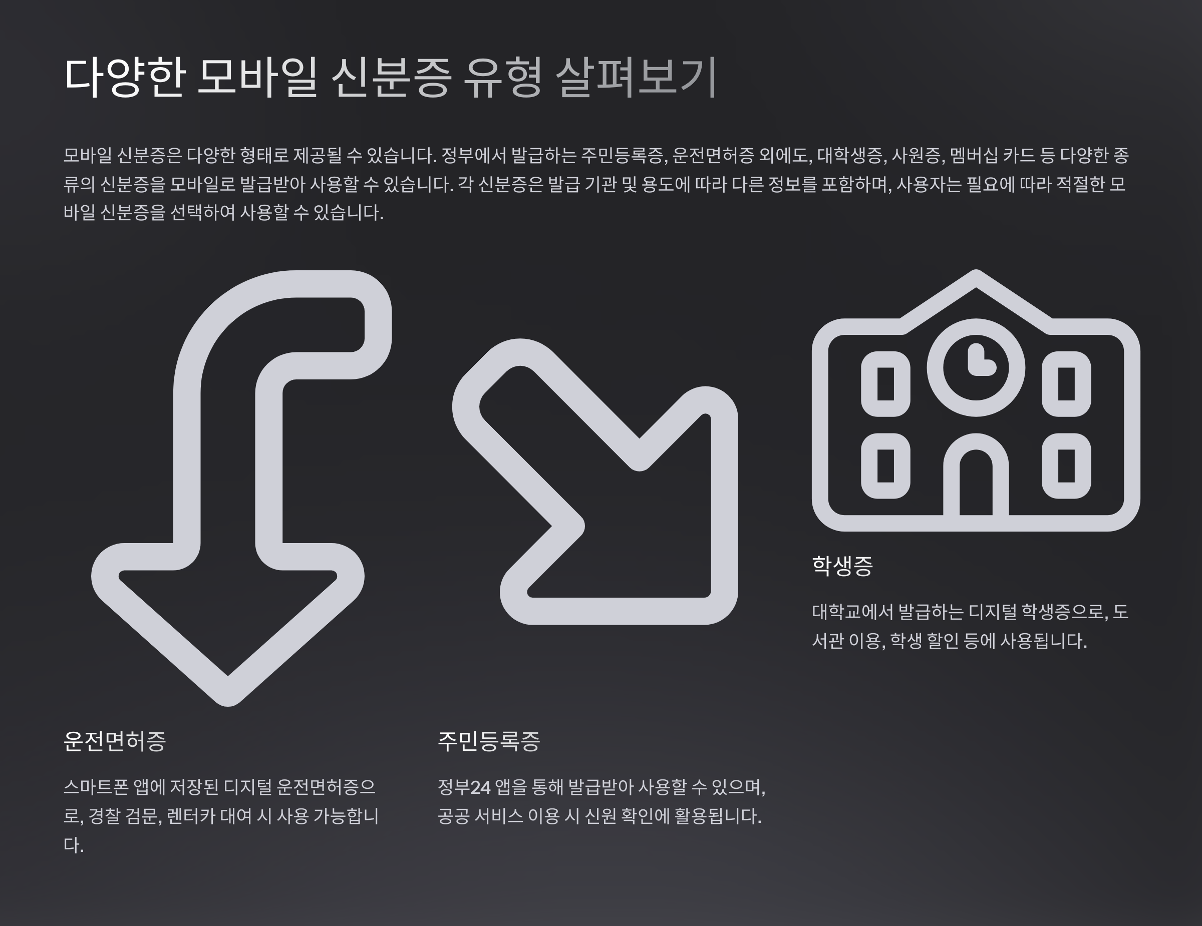 그럼, 모바일 신분증에는 어떤 종류가 있는지 살펴볼까요? 📑